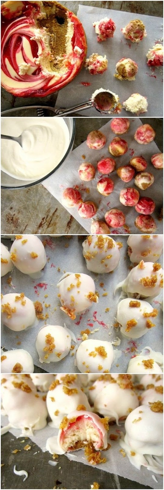 What a fantastic idea ! I’m already imagining lots of variations with different cheesecakes (my family’s favourite is a lemon baked cheesecake I make… would be gorgeous as a lemon and white chocolate bite version with candied lemon rind as a ‘garnish’. Mmmm). It’s kinda like a super amped up delicious better-than-a-truffle dessert..